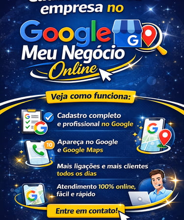Cadastramos, otimizamos e posicionamos sua empresa no Google para gerar mais visibilidade, mais contatos e mais vendas.