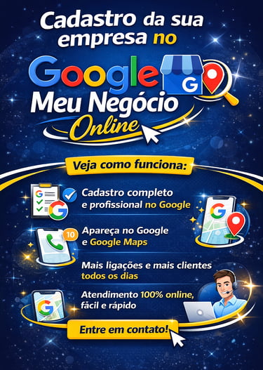 Trabalhamos de forma 100% online, com estratégias atualizadas, técnicas comprovadas e atenção personalizada para cada negócio. Nosso objetivo não é apenas cadastrar sua empresa, mas transformar sua presença digital em uma máquina de visibilidade e geração de oportunidades.